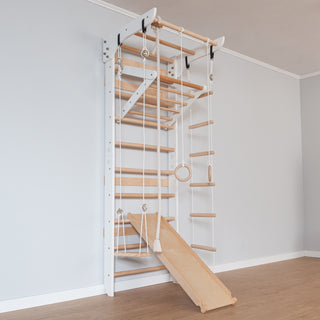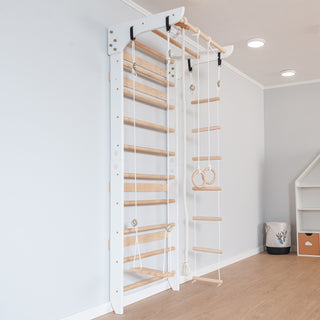 We love the Swedish ladder. It's been a great addition to our living room where our children play and move their bodies on a daily basis! The ladder is stable as its on studs, and we liked that it came with so many add ons, so they never get bored of using it!